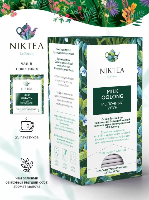 Niktea Milk Oolong Молочный Улун, чай зеленый с ароматом молока в пакетиках, 1,75 гр x 25 шт.