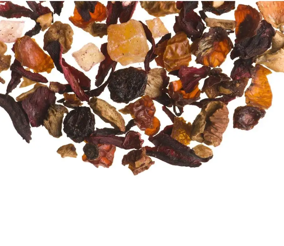 Гибискус, яблоко, шиповник, кусочки ананаса, аромат персика и маракуйи