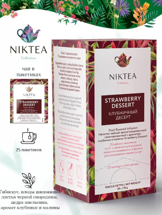 Niktea Strawberry Dessert, напиток чайный с ароматом клубники и малины, 2гр x 25шт