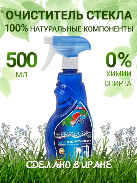 Спрей для очистки стекла Mehrtash произведен в Иране из 100% натуральных ингредиентов. Благодаря использованию нанотехнологий в производстве средства наш продукт обеспечивает идеальные блеск и чистоту стеклянных поверхностей. Не оставляет подтеков, разводов, придает поверхностям антистатические свойства. Спрей для стекол подходит для уборки в офисе для чистки мебели, диванов, мониторов, стекол, зеркал, торгового оборудования. Благодаря натуральным компонентам и высокотехнологичному производству наш продукт обладает антибактериальными, антистатическими и гипоаллергенными свойствами. Наша бытовая химия для дома включает в себя универсальные моющие средства для уборки, а также экологически чистые средства для уборки дома. Мы хоть и относимся к категории "бытовая химия", но в наших продуктах никакой химии нет. И мы этим действительно гордимся. Состав нашего спрея абсолютно натуральный и безопасный для здоровья, что делает его идеальным выбором для семей. Международные сертификаты подтверждают биоразлагаемость, безопасность и эффективность средства. Попробуйте всю линейку бытовой продукции универсальных чистящих и моющих средств от бренда Мерташ: 100% из натуральных компонентов - тот, кто попробовал, остается с нами!