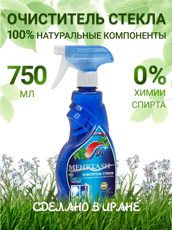 Спрей для очистки стекла Mehrtash произведен в Иране из 100% натуральных ингредиентов. Благодаря использованию нанотехнологий в производстве средства наш продукт обеспечивает идеальные блеск и чистоту стеклянных поверхностей. Не оставляет подтеков, разводов, придает поверхностям антистатические свойства. Спрей для стекол подходит для уборки в офисе для чистки мебели, диванов, мониторов, стекол, зеркал, торгового оборудования. Благодаря натуральным компонентам и высокотехнологичному производству наш продукт обладает антибактериальными, антистатическими и гипоаллергенными свойствами. Наша бытовая химия для дома включает в себя универсальные моющие средства для уборки, а также экологически чистые средства для уборки дома. Мы хоть и относимся к категории "бытовая химия", но в наших продуктах никакой химии нет. И мы этим действительно гордимся. Состав нашего спрея абсолютно натуральный и безопасный для здоровья, что делает его идеальным выбором для семей. Международные сертификаты подтверждают биоразлагаемость, безопасность и эффективность средства. Попробуйте всю линейку бытовой продукции универсальных чистящих и моющих средств от бренда Мерташ: 100% из натуральных компонентов - тот, кто попробовал, остается с нами!