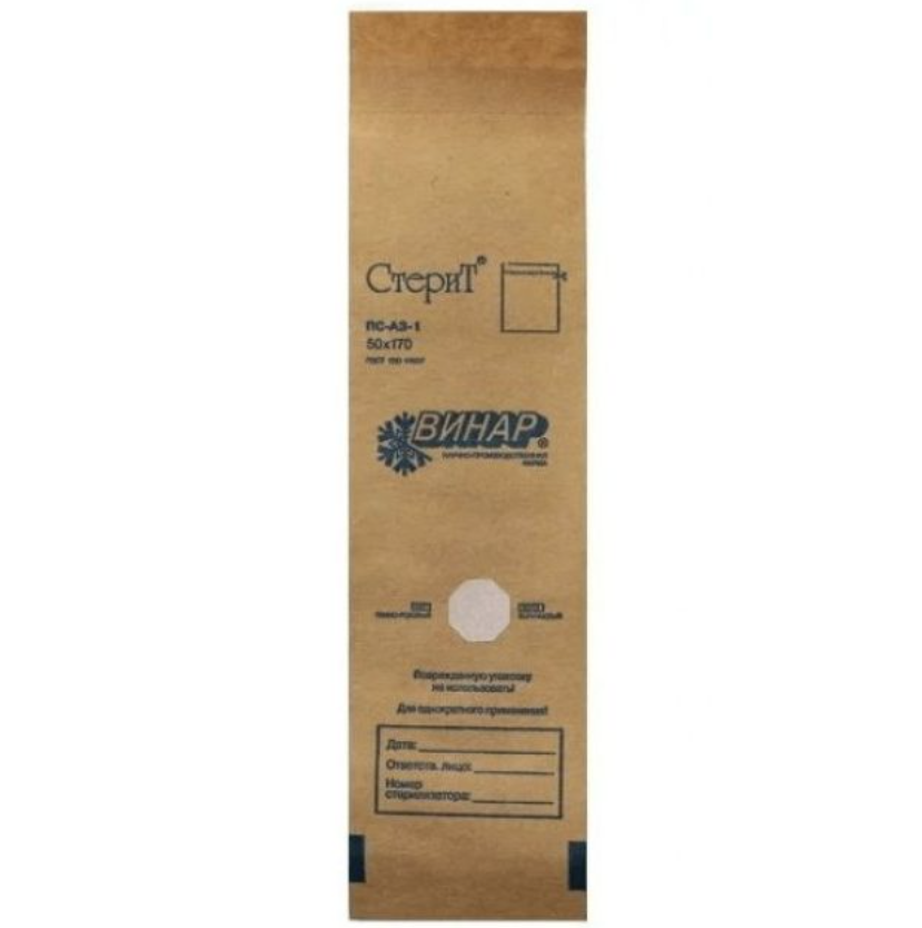Пакеты бумажные самоклеящиеся для стерилизации «СтериТ», 50х170 мм, 100 шт/упк