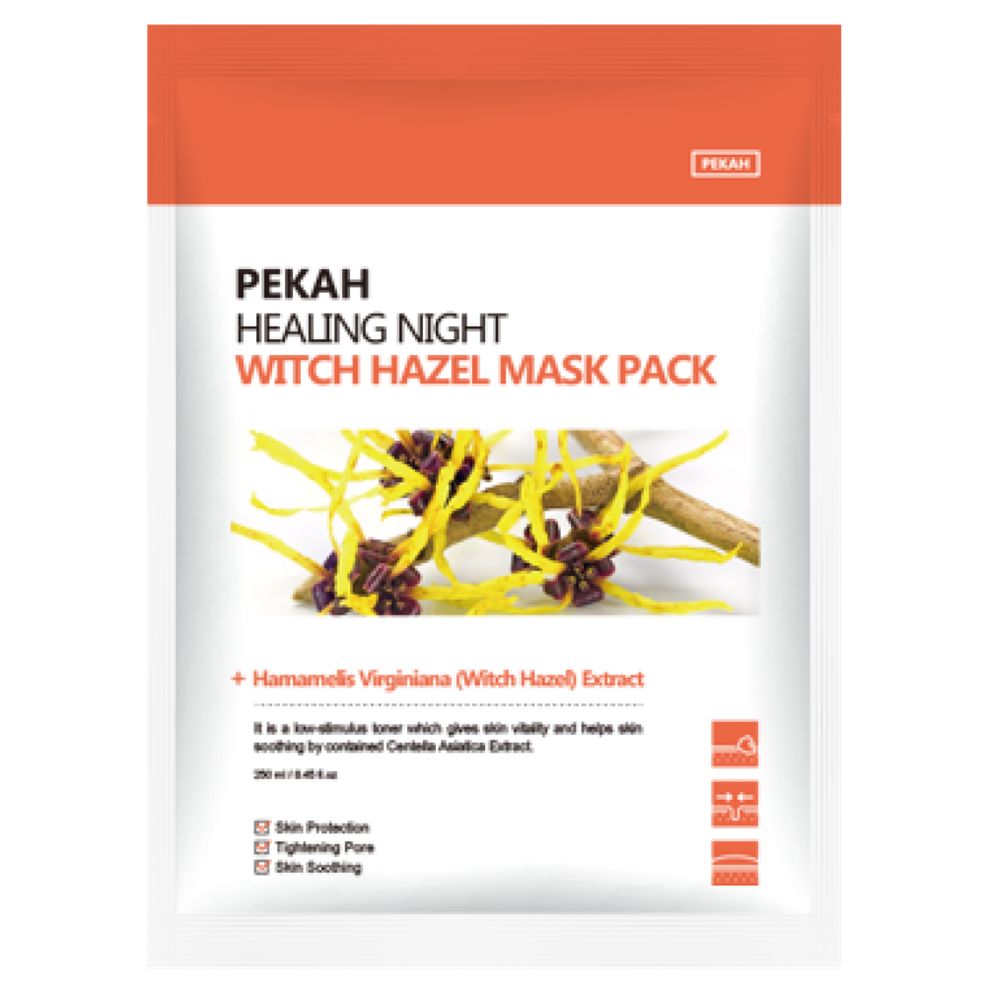 PEKAH HEALING NIGHT WITCH HAZEL MASK PACK содержит экстракт Гамамелиса Виргинского, который превосходно успокаивает кожу, улучшает ее структуру и способствует мягкому сужению пор. А 11 растительных экстрактов способствуют снятию отечности и покраснений. Лаванда и чайное дерево подарят дополнительный противовоспалительный эффект.