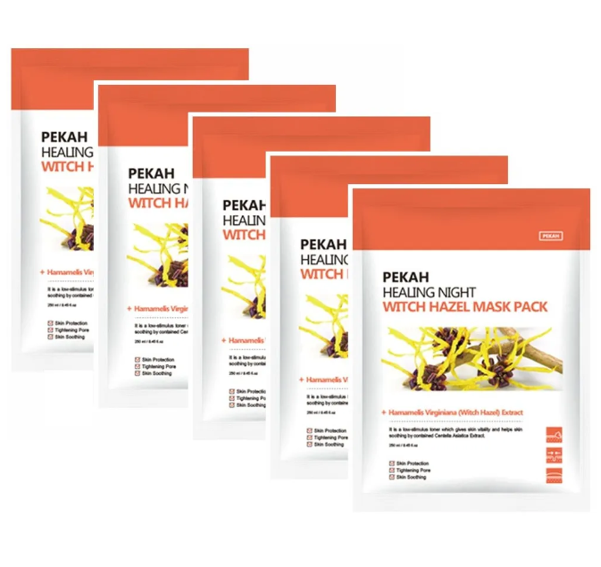PEKAH HEALING NIGHT WITCH HAZEL MASK PACK содержит экстракт Гамамелиса Виргинского, который превосходно успокаивает кожу, улучшает ее структуру и способствует мягкому сужению пор. А 11 растительных экстрактов способствуют снятию отечности и покраснений. Лаванда и чайное дерево подарят дополнительный противовоспалительный эффект.