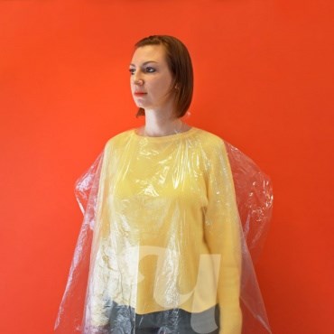 Одноразовые пеньюары из полиэтилена препятствуют попаданию воды, краски, лаков или других косметических веществ на одежду клиентов. Используются во время стрижек, окрашивания или химической завивки волос.