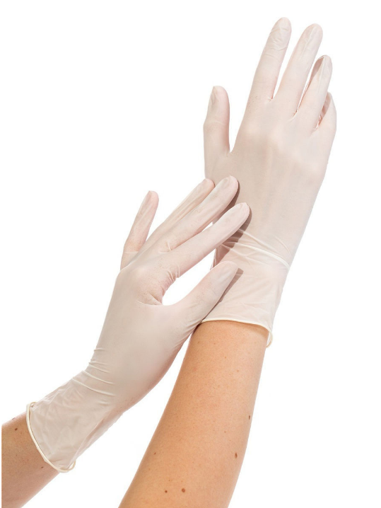 Латексные нестерильные перчатки защищают руки при проведении косметологических и маникюрных процедур. Отличаются механической прочностью и стойкостью к повреждениям. Прекрасно подходят для процедур с использованием кислот, щелочей, а также разогретых веществ. Обладают эффектом второй кожи, комфортны при длительной работе. Производятся из натурального каучукового латекса, слегка опудрены, могут вызывать аллергию. Вес 1 перчатки - 4,77 г.