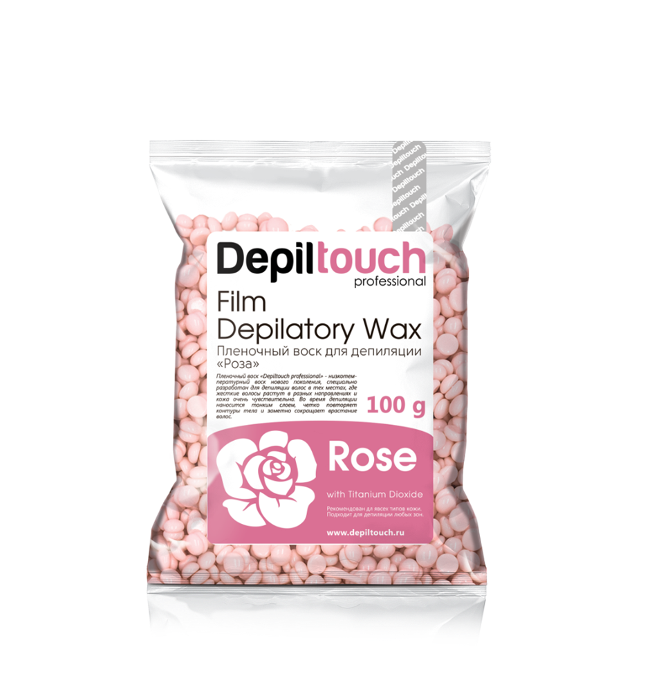 Гранулированный пленочный (бразильский) воск с диоксидом титана эффективно и мягко удаляет волосы. Диоксид титана в составе воска дарит ему дополнительную пластичность, снижает температуру плавления и увеличивает время застывания, благодаря чему воск Роза прекрасно подходит для работы начинающим мастерам.