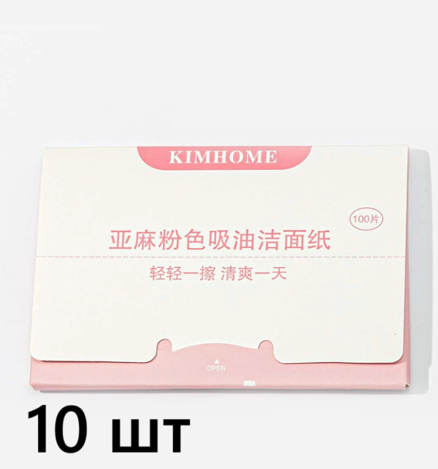Розовые матирующие салфетки для лица KIMHOME, 10 х 100 листов.