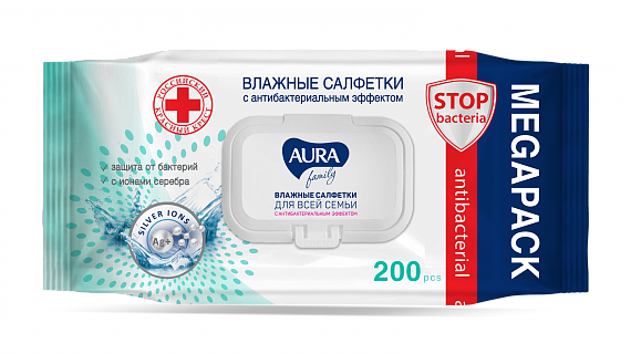 Влажные салфетки Aura Family универсальны в использовании. Созданы для очищения кожи от загрязнений и создания антибактериальной защиты. Большой формат упаковки — 200 штук. Упаковка оснащена крышкой, предотвращающей высыхание салфеток и попадание загрязнений в упаковку. Пачку можно взять с собой в дорогу, она легко помещается в небольшую сумку или портфель.