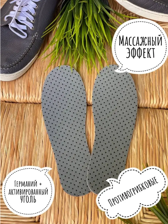 Стельки мужские тонкие с германием, 24-28 смИспользуя наши удобные, дышащие стельки, вы решите сразу несколько проблем – справитесь с неприятным запахом (стельки для обуви от запаха), микробами и излишней потливостью стоп. Германий, входящий в состав стелек, оказывает мощный противогрибковый (стельки противогрибковые), противовирусный и антибактериальный эффект, мягкий дышащий материал обеспечит свободную циркуляцию воздуха, а специальный активированный уголь в составе избавит от нежелательных ароматов. Демисезонные стельки предназначены для всех видов обуви, особенно рекомендованы для ежедневного ношения в обуви на тонкой подошве. Материал: полиэстер, ПВХ, нетканый материал, активированный уголь, германий.