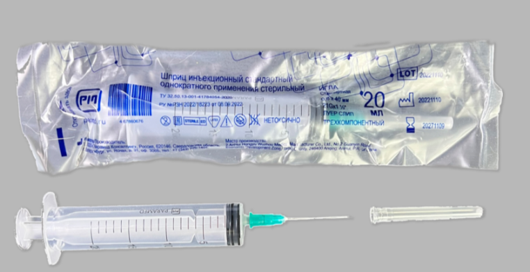 Шприц стерильный Луер Слип 3-компонентный, 20мл, игла 21Gx40mm, 36шт