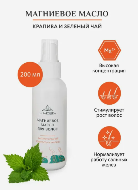 Магниевое масло — это высококонцентрированный раствор хлорида магния, восстанавливает и укрепляет волосяные луковицы, снижает риск выпадения волос, возвращая им силу и блеск.