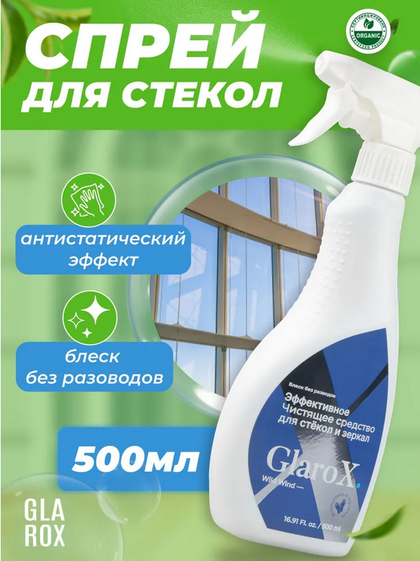 Средство для мытья окон и зеркал GLAROX, 500 мл