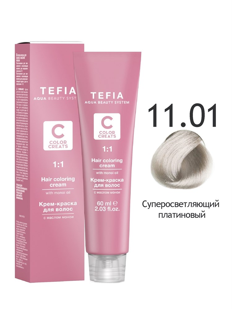 TEFIA ABS Крем-краска для волос с маслом монои, 60 мл 11.01 суперосветляющий платиновый