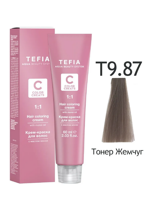 TEFIA ABS Крем-краска для волос с маслом монои ТОНЕР, 60 мл Жемчуг Т9.87