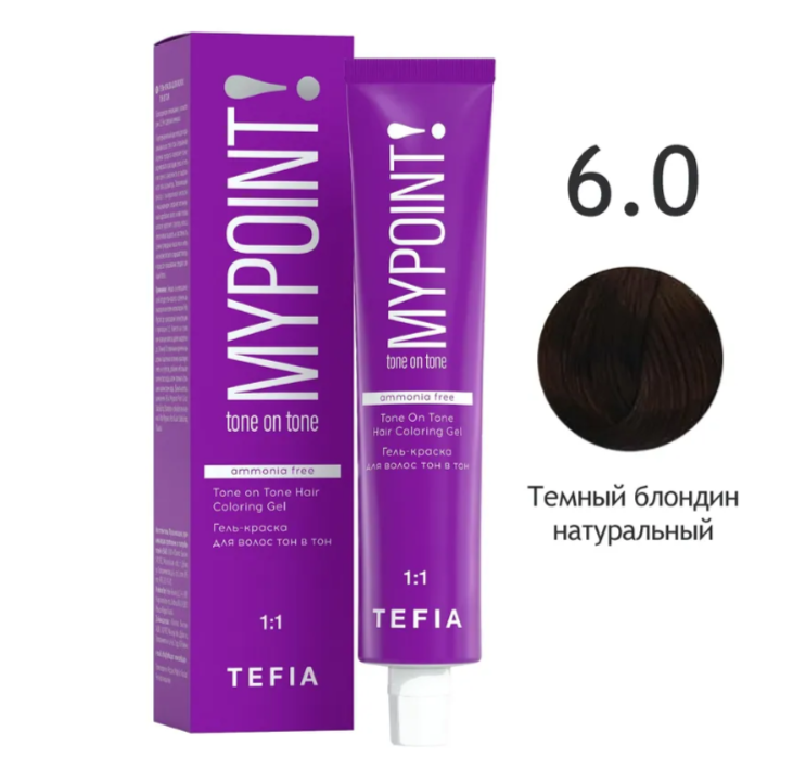 Tefia Гель-краска для волос тон в тон 6.0 темный блондин натуральный MYPOINT 60 мл