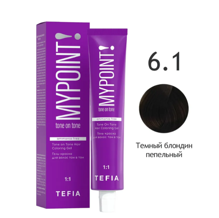 Tefia. Гель краска для волос тон в тон 6.1 темный блондин пепельный профессиональная MYPOINT 60 мл