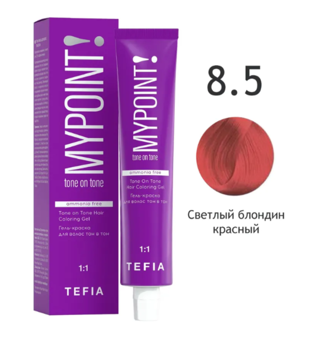Tefia. Гель краска для волос тон в тон 8.5 светлый блондин красный профессиональная MYPOINT 60 мл