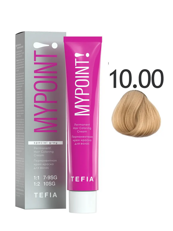 TEFIA Mypoint Крем-краска 10.00 экстра светлый блондин натуральный для седых волос, 60мл