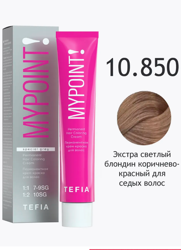 TEFIA Mypoint Перманентная крем-краска 10.850 экстра свет блонд корич-красный для седых волос, 60мл