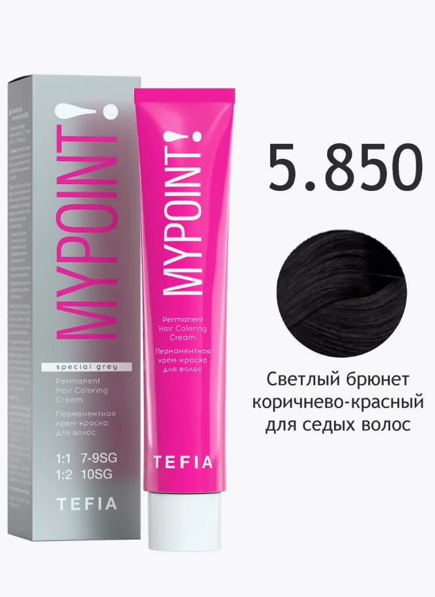 TEFIA Mypoint Перманентная крем-краска 5.850 светлый брюнет коричнево-красный для седых волос, 60мл