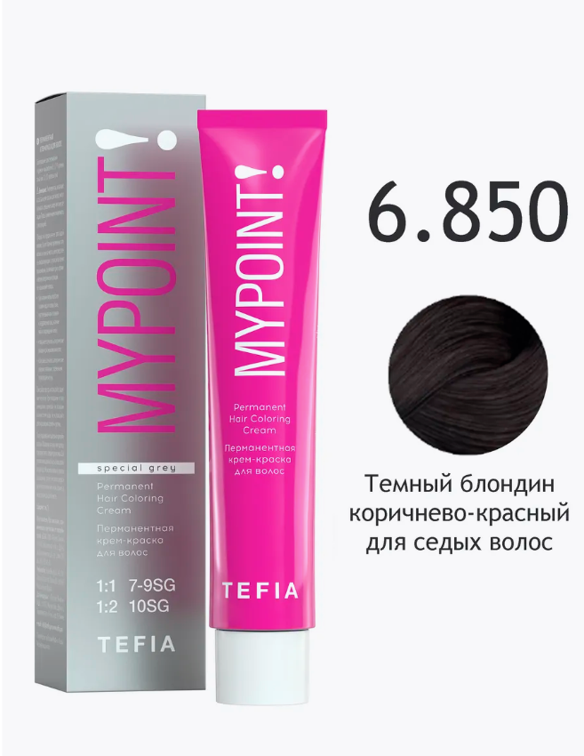 TEFIA Mypoint Перманентная крем-краска 6.850 темный блондин коричнево-красный для седых волос, 60мл
