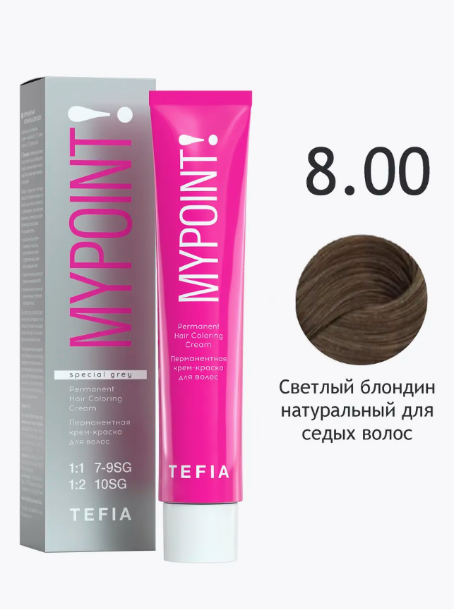 TEFIA Mypoint Перманентная крем-краска 8.00 светлый блондин натуральный для седых волос, 60мл