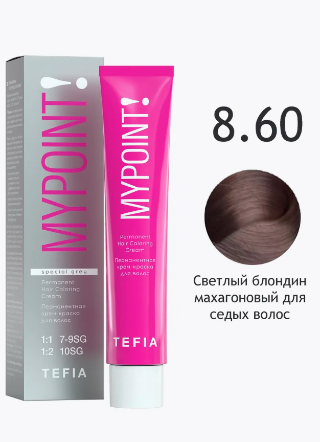 TEFIA Mypoint Перманентная крем-краска 8.60 светлый блондин махагоновый для седых волос, 60мл