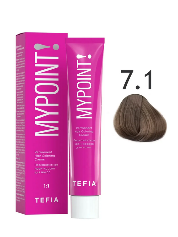 TEFIA Mypoint Перманентная крем-краска для волос 7.1 блондин пепельный, 60мл