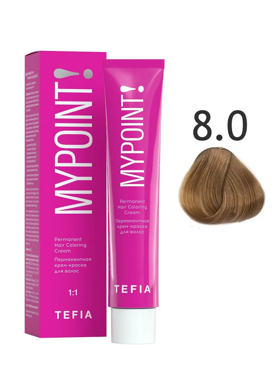 TEFIA Mypoint Перманентная крем-краска для волос 8.0 светлый блондин натуральный, 60мл