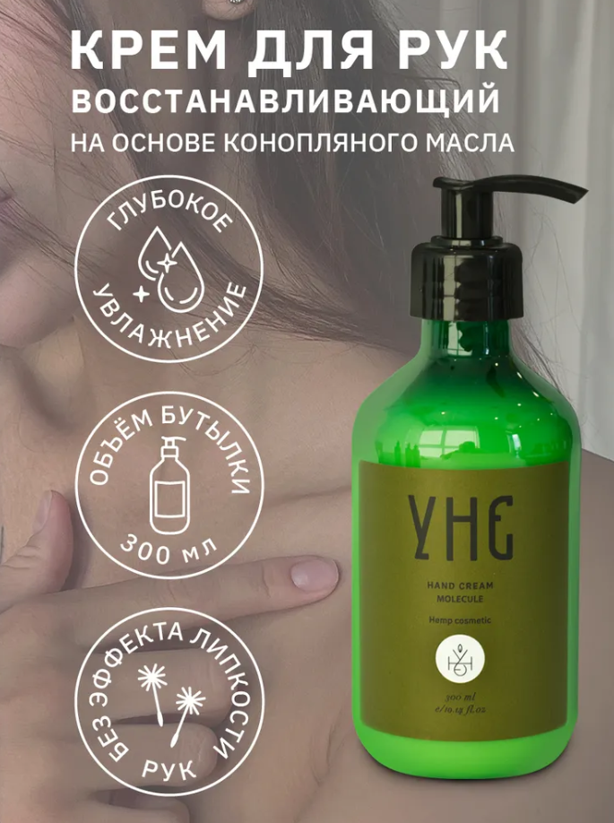 и сформированный вокруг монопродукта. Конопляное масло, на основе которого созданы все наши продукты, богато полиненасыщенными жирными кислотами омега-3, омега-6, витаминами A, B, E, K и обладает антиоксидантными свойствами. Мы придерживаемся философии экологичной заботы о себе и своём теле, поэтому осознанно подходим к производству, используем крафтовое масло из технической конопли холодного отжима и закупаем качественные органические ингредиенты, а также не тестируем продукты на животных.Восстанавливающий эластичность и упругость крем для рук с конопляным маслом, интенсивно питает и смягчает кожу, за счёт аминокислот и витаминов А, В, Е, К. Комплекс жирных кислот обеспечивает глубокое увлажнение кожи, предотвращая закупорку пор. УНЕ — Петербургский бьюти-бренд, вдохновлённый традиционной культурой коноплеводства