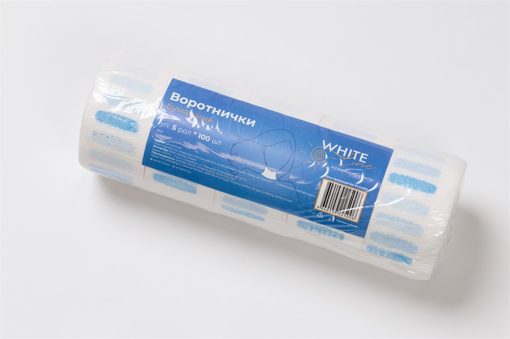 Изготовлены из специальной крепированной бумаги с липким элементом для фиксации. Используются для предотвращения контакта кожи клиента с пеньюаром и защищают от остриженных волос.