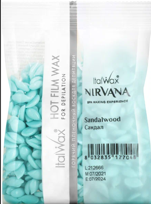 Воск горячий (пленочный) ITALWAX Nirvana Сандал гранулы 100 гр. Инновационная формула синтетического воска с сандаловым маслом для ароматической СПА–депиляции. Воск создан специально для депиляции по маслу. Предназначен для удаления волос в деликатных зонах (подмышки, бикини), также может применяться и на больших поверхностях (ноги, руки, спина).Воск наносится без учета направления роста волос. Снимается без полосок. Воск отлично справляется с короткими забритыми волосками, а ароматное масло защищает, увлажняет тонкую чувствительную кожу во время процедуры и создает релаксирующий эффект. Разогретый воск имеет выраженный аромат сандала, усиливает ухаживающее действие масла, что обеспечивает гладкость и нежность кожи после депиляции.