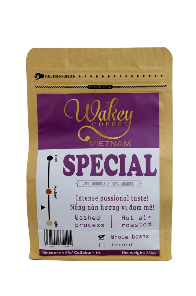 WAKEY Кофе в зернах 70% Робуста + 30 % Арабика (250 г/пакет)