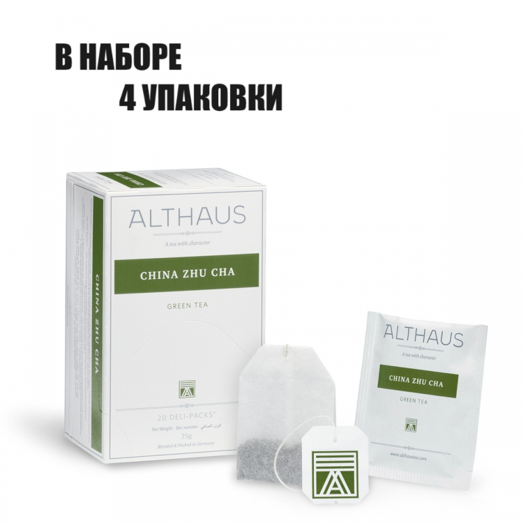 Зеленый чай Althaus China Zhu Cha в пакетиках, 4 упаковки