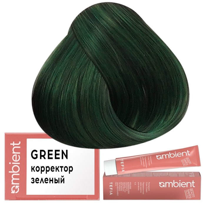 Зеленый корректор, Перманентная крем-краска для волос, AMBIENT TEFIA 60 мл.